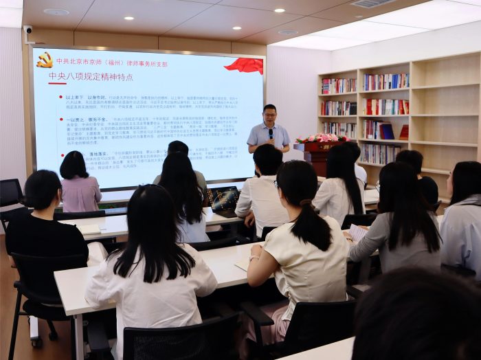 为推动深入贯彻中央八项规定精神学习教育走深走实,强化律师队伍作风建设,2025年6月24日,北京市京师(福州)律师事务所