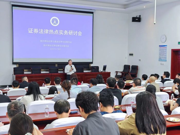 2025年11月8日,福州律协证券与基金法律专业委员会举办“证券法律热点”实务研讨会,吸引近百名律师参与交流讨论。 研讨