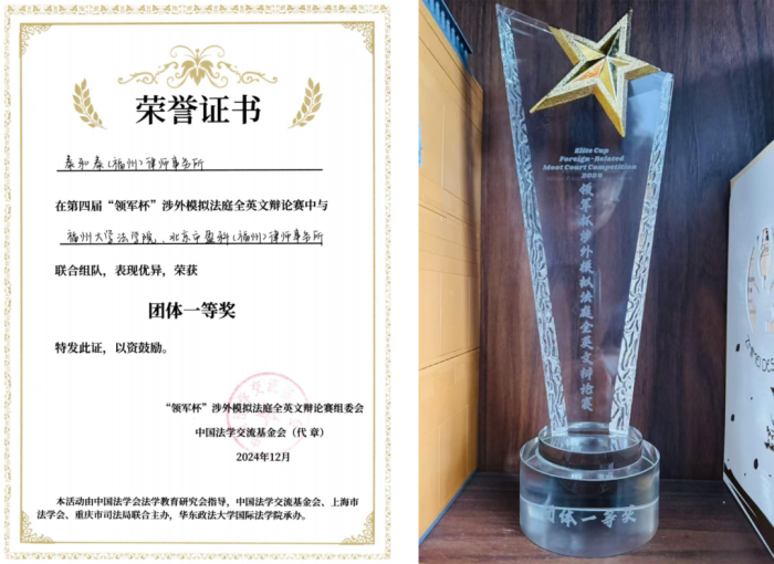 泰和泰福州律师事务所郑晖律师在第四届“领军杯”涉外模拟法庭全英文辩论赛中荣获佳绩