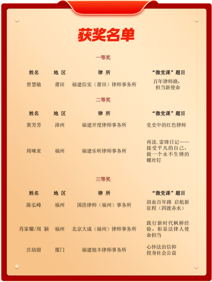 福州市律师协会:喜报!我市3部“微党课”作品获奖