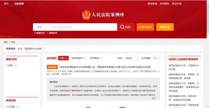 近日,张某伟诉江苏泗阳海峡污水处理有限公司、泗阳某环保有限公司等七家公司环境污染责任纠纷案被最高人民法院入选人民法院案例