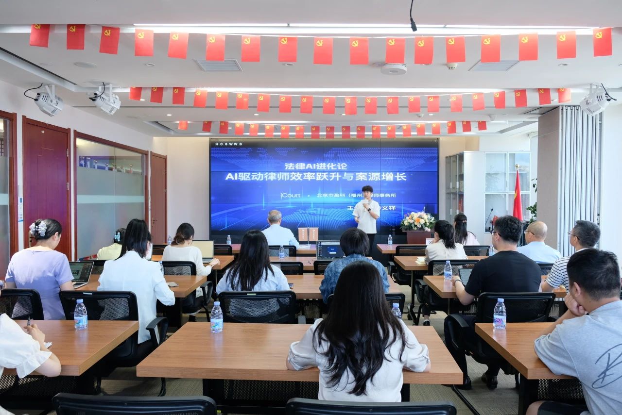 为深入探索 AI 如何推动法律服务迈向 “智能化、场景化、定制化” 新高度,提升律师专业素养与服务质量,为客户提供更优质高效的法律服务,8月15日,北京市盈科(福州)律师事务所(以下简称:盈科福州)举办iCourt《AI赋能法律服务升级》讲座,特邀iCourt区域负责人、大数据与人工智能解决方案专家索义祥先生进行分享。讲座吸引了众多律师同仁的参与,共同探索AI技术在法律服务领域的创新应用与未来趋势。