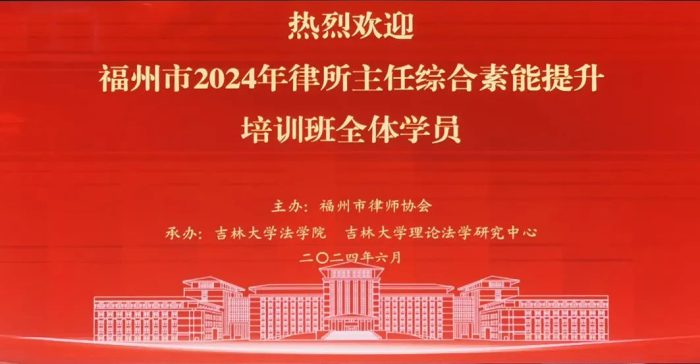 福州市律师协会2024年律所主任综合素能提升培训班圆满结业 福州律师资讯发布者 福州律师网2024年6月11日2024年6月6日,福州律协2024年律所主任综合素能提升培训班顺利结业,并在吉林大学高端法律人才培训基地举行结业典礼。详情
