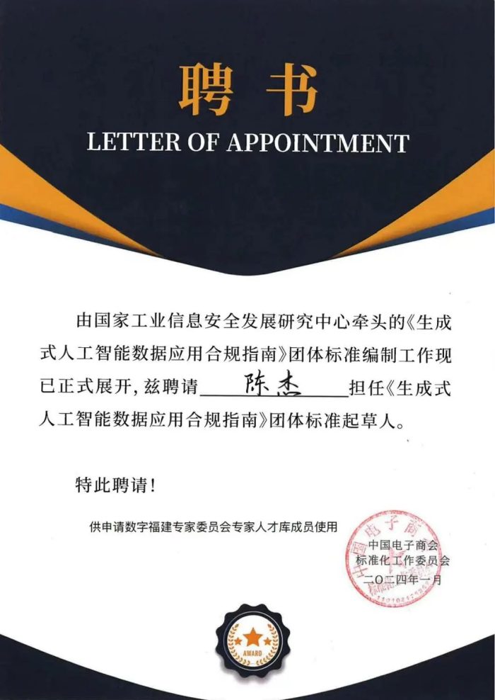 大成福州律师作为起草人之一参编的《生成式人工智能数据应用合规指南》团体标准正式发布 福州律师资讯发布者 福州律师网2024年5月14日近日,由国家工业信息安全发展研究中心立项并牵头,中国电子商会归口管理的《生成式人工智能数据应用合规指南》(团体标准)(以详情