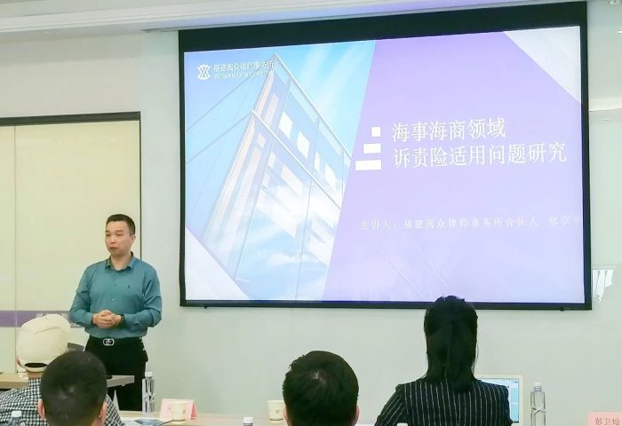 福建闽众律师事务所受邀开展“海商海事相关保险知识”专题培训 福州律师资讯发布者 福州律师网2024年4月10日2024年4月1日,福建闽众律师事务所合伙人郑学平、林燕锋两位律师受邀在福建闽众律师事务所为多家保险公司主要负责人、船东详情