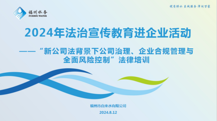 大成福州律师受邀为我市自来水公司开展新公司法背景下公司治理等专题讲座 福州律师资讯发布者 福州律师网2024年8月21日近日,福州市自来水有限公司(以下简称“福州自来水公司”)开展2024年法治宣传教育进企业暨“新公司法背景下公司治理、企业详情