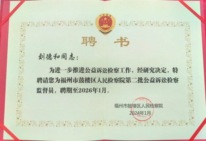 华泰福州律师事务所刘德和律师获聘福州市鼓楼区人民检察院公益诉讼检察监督员 福州律师资讯发布者 福州律师网2024年3月12日为深入贯彻落实党的二十大精神,推动人民监督与为民司法有机结合,更大范围动员社会力量参与公益诉讼检察工作,最大限度凝聚守护详情