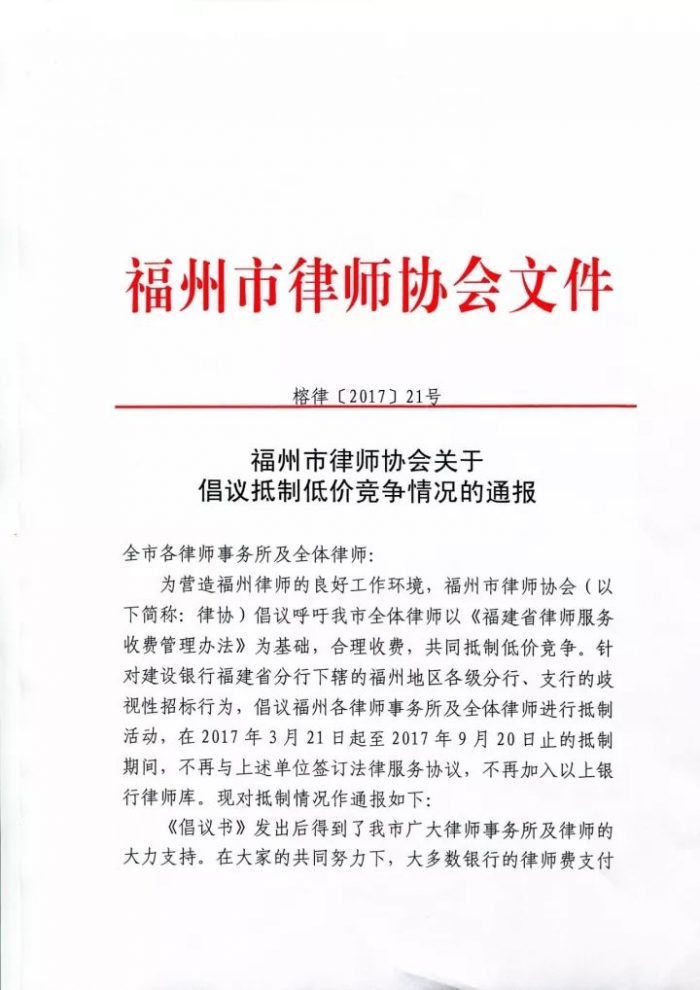 福州市律师协会关于倡议福州律师事务所及福州律师抵制低价竞争情况的通报 福州律师资讯发布者 福州律师网2017年10月13日福州市律师协会关于倡议福州律师事务所及福州律师抵制低价竞争情况的通报 . 福州律师网专业福州律师分享