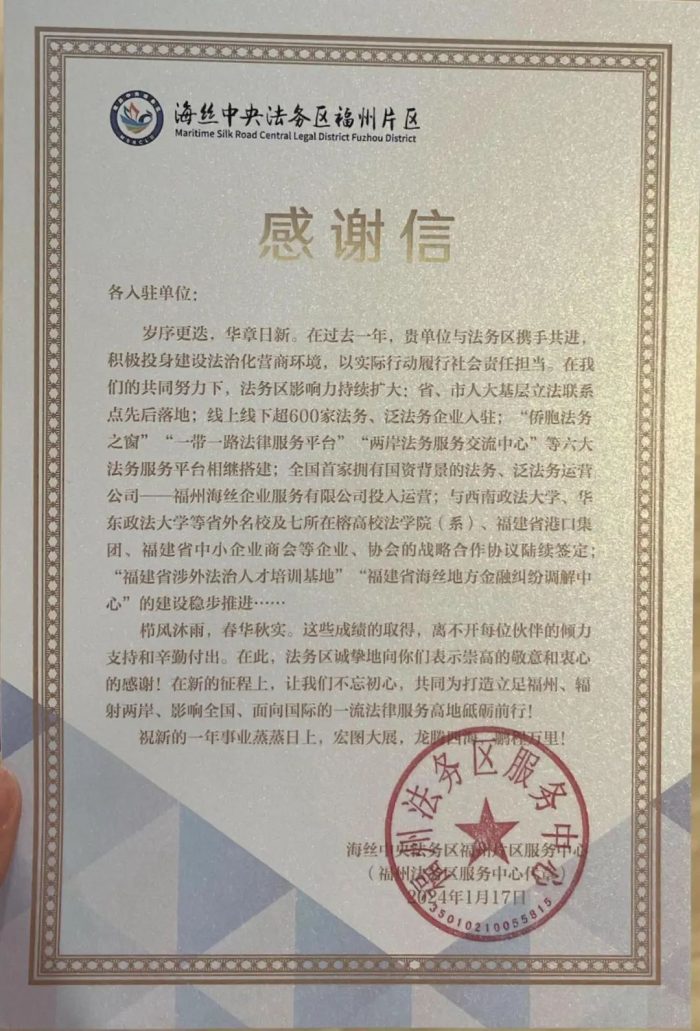 福州律师事务所应邀出席海丝中央法务区福州片区年终交流座谈会 福州律师资讯发布者 福州律师网2024年2月23日2024年1月17日,海丝中央法务区福州片区(以下简称“福州法务区”)隆重召开2023年终交流座谈会,本次座谈会以“海丝详情